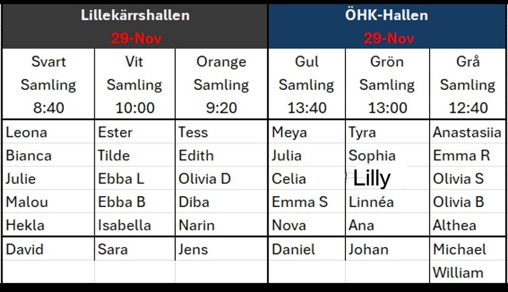 Vid sjukdom kontakta den av oss som är ledare för just ert barn nu på lördag.